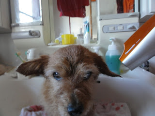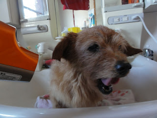 チョコは、私がする大胆な?シャンプーより、主人の繊細なシャンプーがお好みのようですよ(笑)