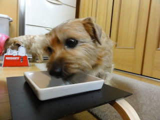 食べ終わったら、お皿の外側まで舐めてる。