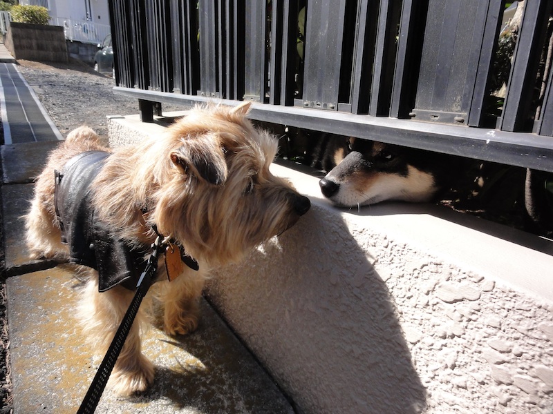 帰り道で、アムルは黒柴のチコちゃんにご挨拶。