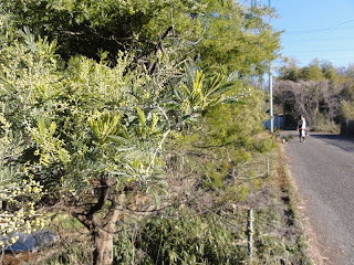 散歩道に大きなミモザの木が2本並んでます。