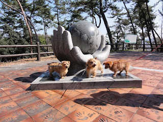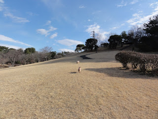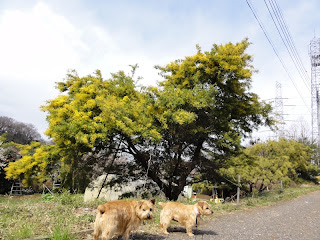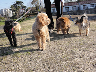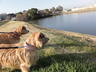 愛知県に到着した翌朝、姉の家のわんこ3匹と一緒に、散歩に行きました。